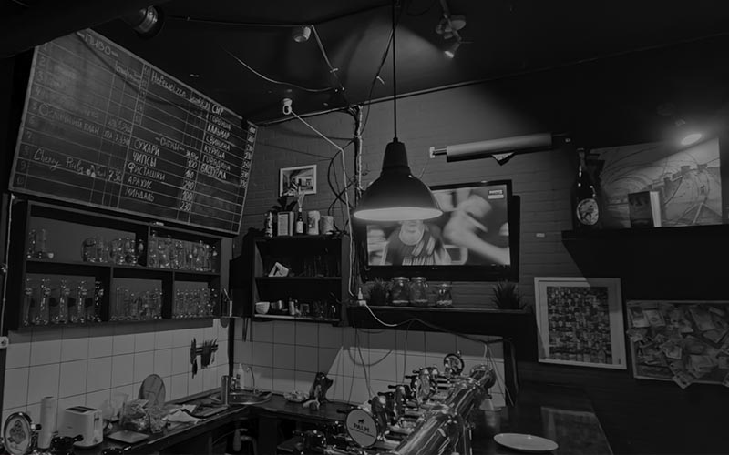 В холодильниках бара находятся десятки наименований крафтового пива, сидра и напитков.